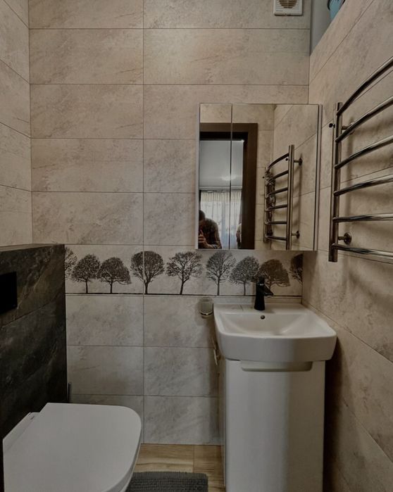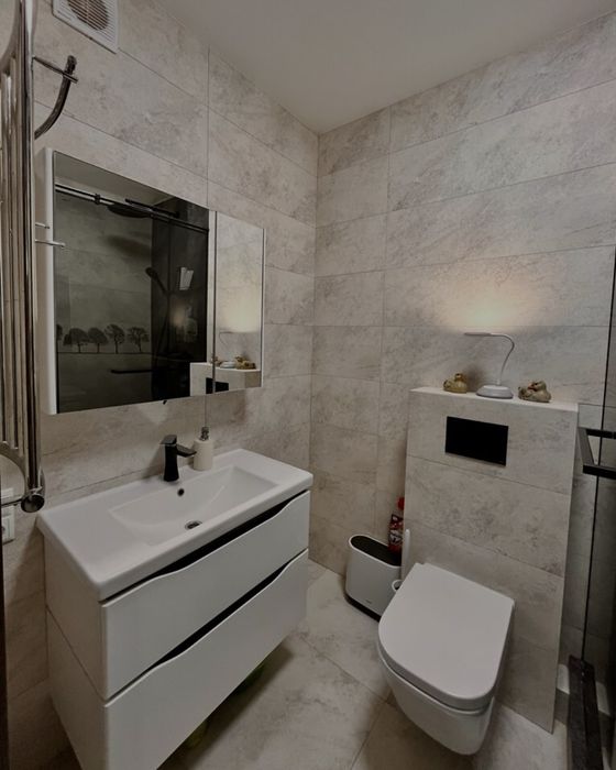 3 кімнатна квартира (повноцінна) жк Львівський Маєток 6 поверх; Продаємо власну трикімнатну квартиру з якісним ремонтом 74/45/13 кв.м. в 9-ти поверховому будинку у с. Софіївська Борщагівка, 6 поверх . Квартира має два санвузли, у ванній кімнаті електропідігрів підлоги з регулятором та таймером, душова система з термостатом, дорога сантехника, скляна шторка фірми Ліберта. Всі витяжки з таймерами, в кімнатах люстри з пультами, 5ти ступенева система очистки води (зворотній осмос з мініралізатором).