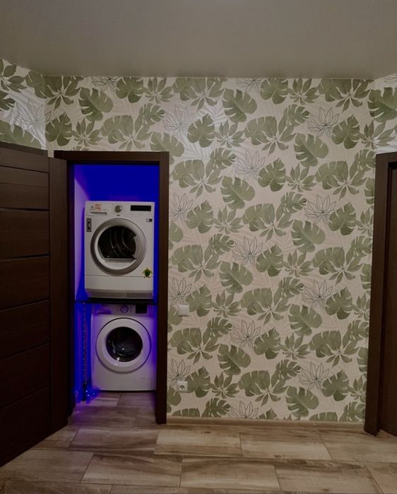 Облаштоване окреме приміщення для пральної та сушильної машини з вентиляцією.