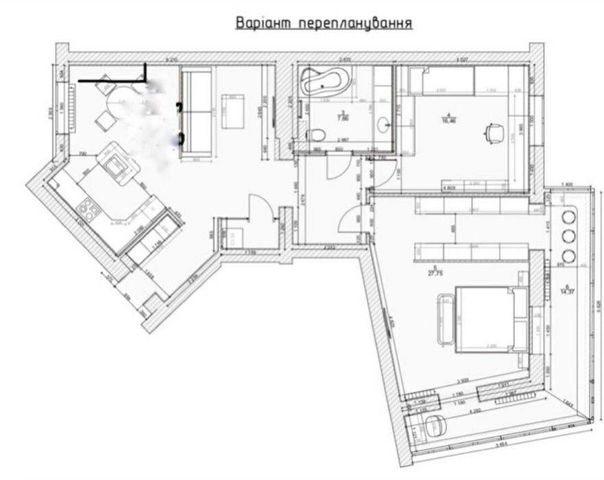 Квартира перепланована на етапі будівництва.