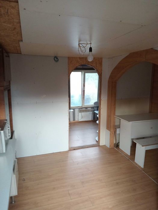 Це супербюджетна квартира у одноповерховому будинку, з креативним плануванням таунхаус, та зараз поділена на три однокімнатні квартири з продуманим, супербюджетним ремонтом.