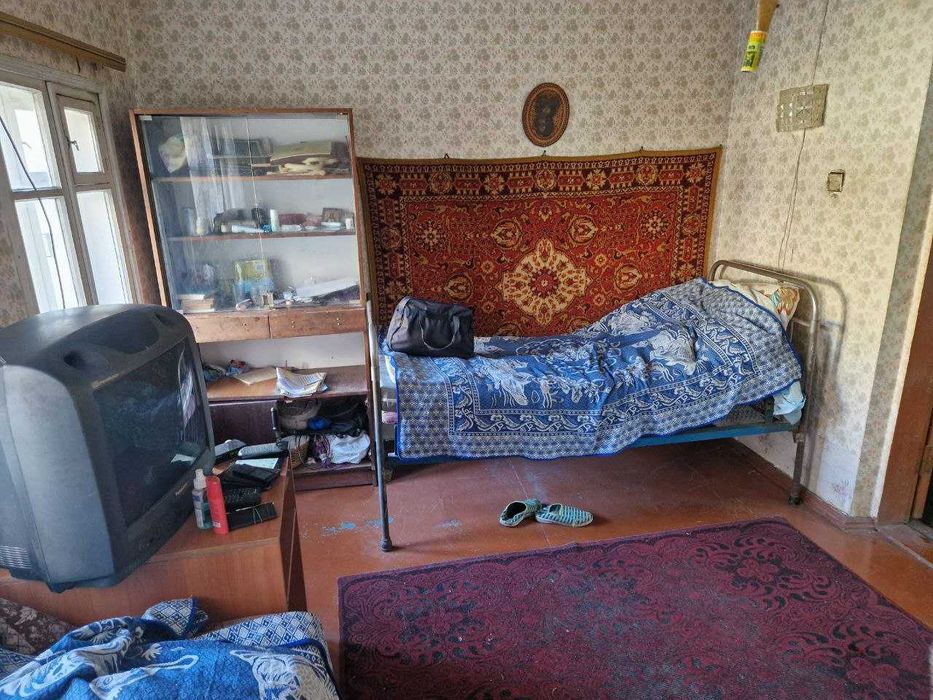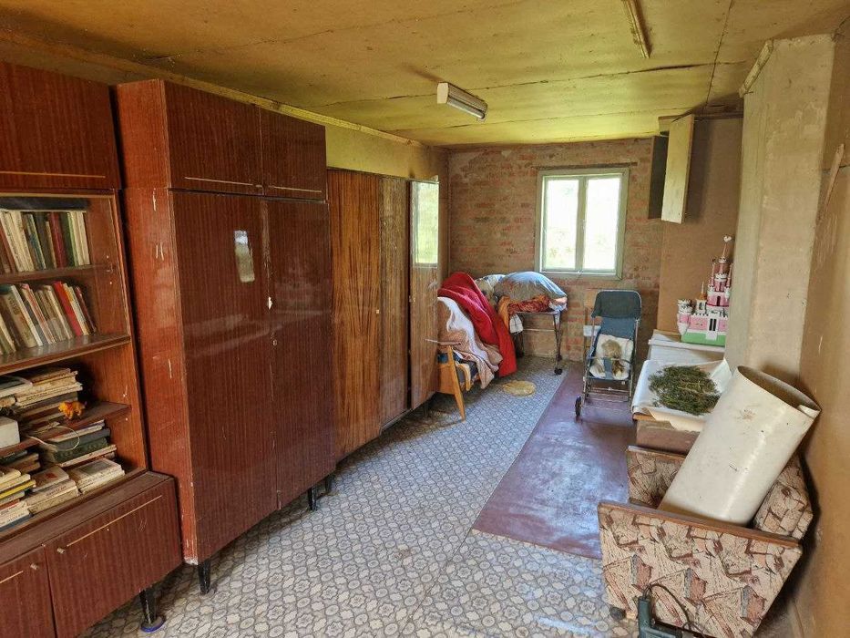 Продам Дом (Село Юрченково); Усередині дім з дерева, обмазаний глиною, обкладений кирпичем. На першому поверсі велика кухня с двума кімнатами. На другому поверсі дві кімнати та балкон. Опалення пічне, дуже калорійне. Підлога керамзіто-бетон, обкладений ОСБ та леноліум. Є галерія, в ній підвал. У дворі колодязь. Сарай разом с гаражем, площею 55 кв. м. (Двері металеві) . Усі приміщення електрофіковані. Поруч з сараєм, літня кухня з плитою.