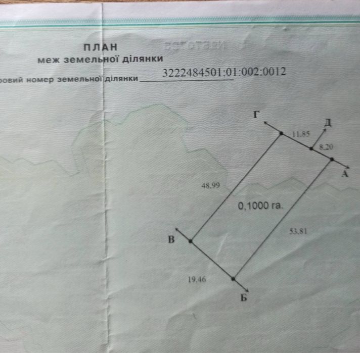 Кадастровий номер: 3222484501:01:002:0012