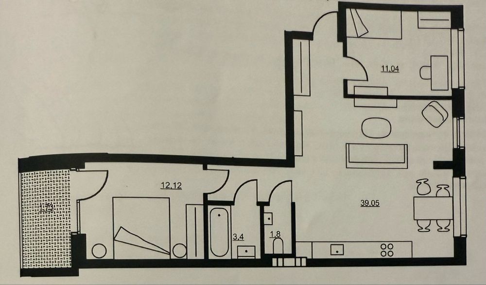 3 кімнати (2 спальні та гостьова кімната )