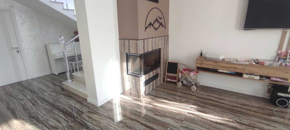 1 поверх: кабінет, кухня, столова, санвузол та вітальня з каміном, тех. кімната.