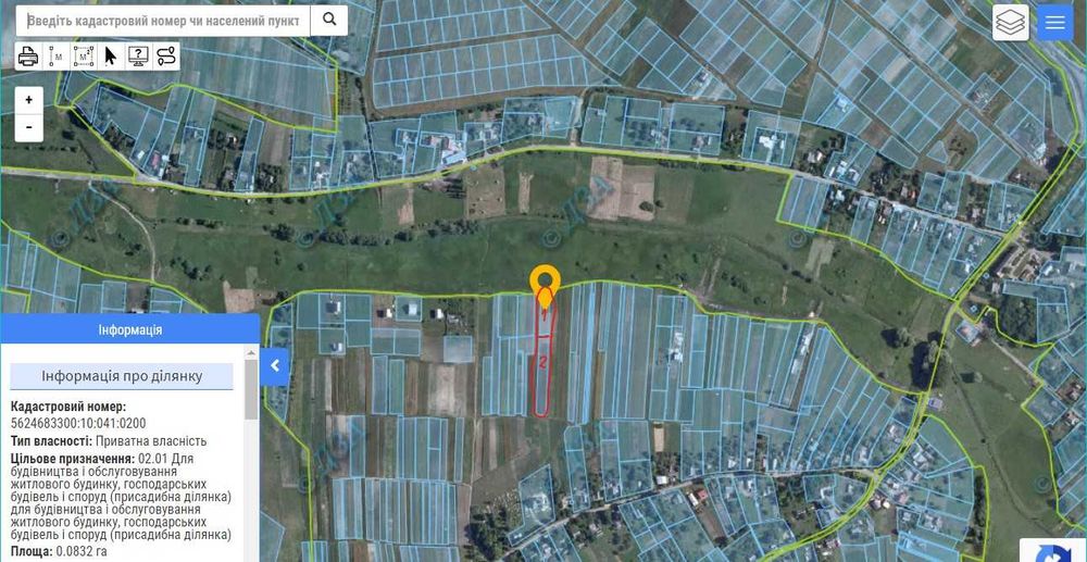 1 - 0,083га під будівництво, 2 - 0,194га під с/г. Земля недалеко від центу села (біля церкви), є можливість для копання ставка поруч з ділянкою. Продаються дві ділянки разом.