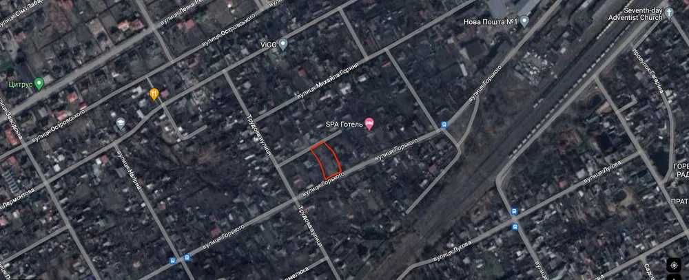 Земельна ділянка має вихід на дві вулиці (вул. Горького і пров. Чапаєва) та ідеально підходить для будівництва таунхаусів, дуплексів або кількох приватних будинків.