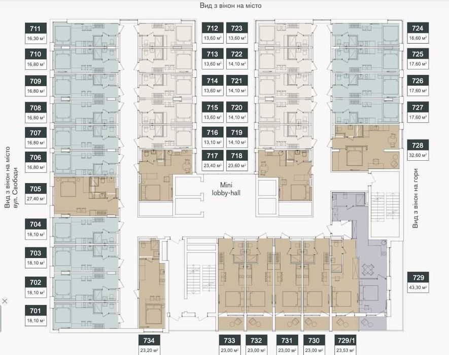 - апартементи розташовані на 9 поверсі з гірським краєвидом.