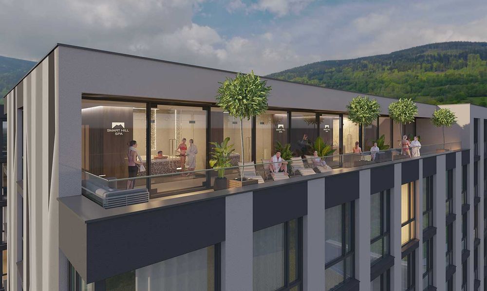 - у комплексі буде власна SPA-зона та ресторан на даху, коворкінг, спортзал, зона для відпочинку, паркінг.
