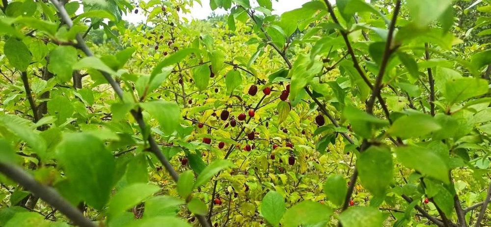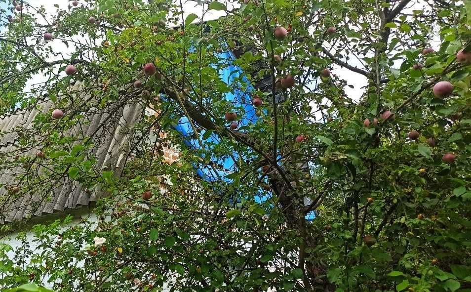 На ділянці дорослий плодовий сад (яблуні, кизил, вишні, калина, виноград, груша та ін.).