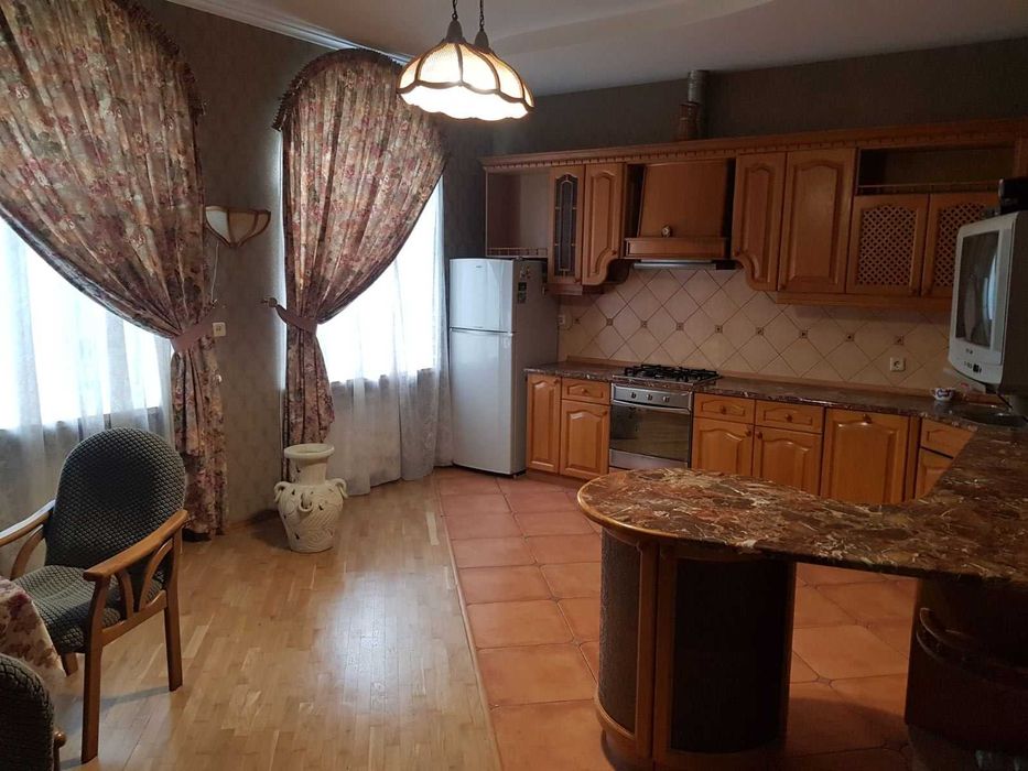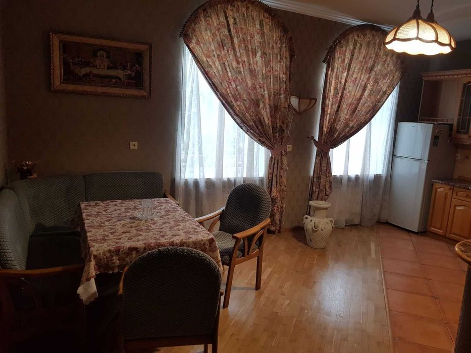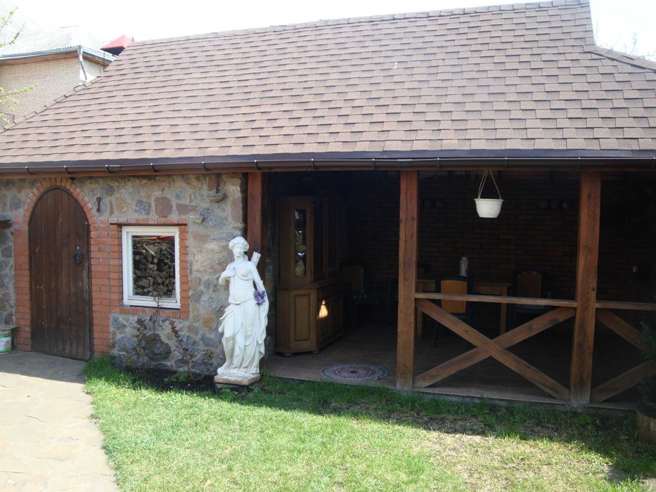 Святошинський; Оренда комфортабельного будинку в Києві, Святошино; Оренда комфортабельного будинку м. Київ, Святошинський район, вул. Жовтнева, 22 (Катеринівка- лісопаркова зона). До метро Житомирська- 1,5 км. Будинок повністю мебльований: камін, сауна, басейн та міні спортзал. В цокольному опалювальному поверсі: сховище-укриття на два виходи, гараж теплий . Загальна площа 400 м.кв., 9 соток земельної площі. Вода автономна, опалення індивідуальне природній газ, каналізація міська, швидкісний інтернет(волокно, 400 мгбіт), бензо-газогенератор. На вулиці три парко місця. На території сад, город та зона відпочинку із каміном, барбекю та ландшафтним дизайном. Будинок розташований у Святошинській лісопарковій зоні . Ціна: 65000 грн. (договірна).