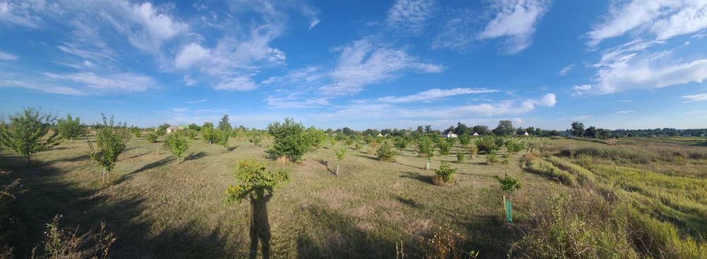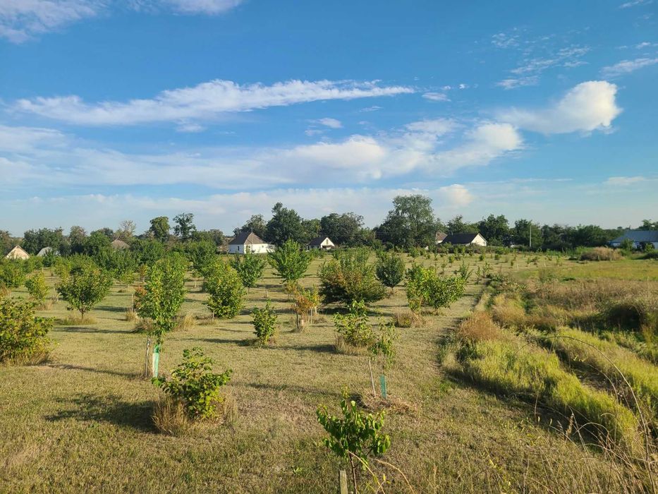 Площа землі 160 соток або (1гектар 60 сотих). Рівна ділянка. Грунт-родючий чорнозем. При бажанні є можливість докупити ще землю поряд. Земля приватизована, призначена для с/г робіт та під забудову. З документами все добре. Стоять дві хати, два сараї і погріб. Електрика є, газ по вулиці. Пробита глибока скважина з чистою водою, яка постійно функціонує. Засаджено молодим садом гарними сучасними сортами фруктових дерев та волоського горіху (сорти Піщанський та Казаку), сортовим фундуком, який вже вступив в плодоношення та приносить прибуток. При потребі розкорчувати завжди можна. Ідеальне місце під теплиці.