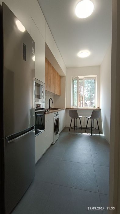 Виконаний преміум ремонт: двері прихованого монтажу, вбудована техніка та шафи, вбудовані плінтуси, велика гардеробна, ідеально рівні пофарбовані стіни, кухня в стелю, ліжко з топовим ортопедичним матрацом, санвузол з вбудованою технікою та теплою підлогою, дуже багато місць для зберігання, великий балкон з видом на сосновi дерева.