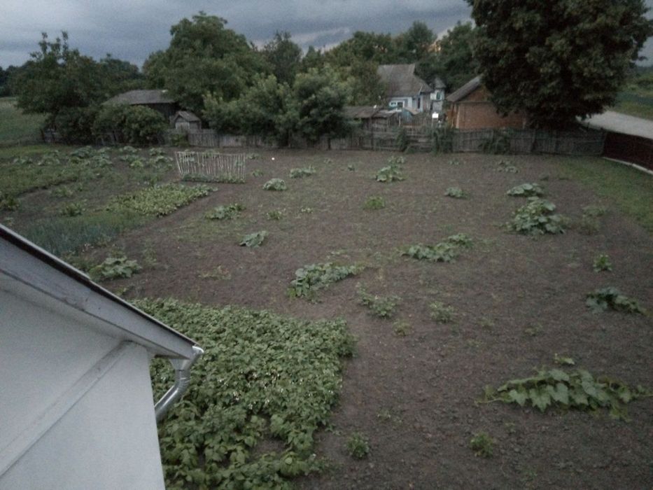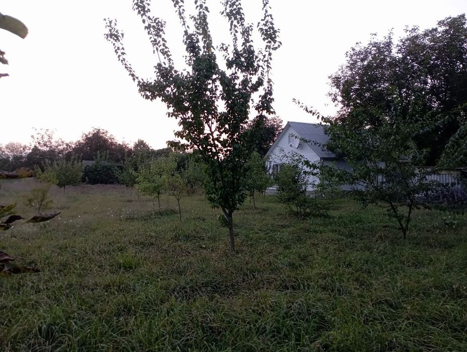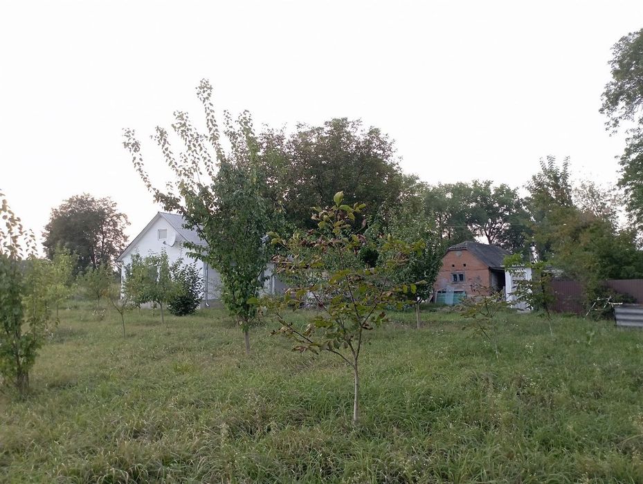 На території велика земельна ділянка з городом та молодим садком з різними фруктовими деревами!