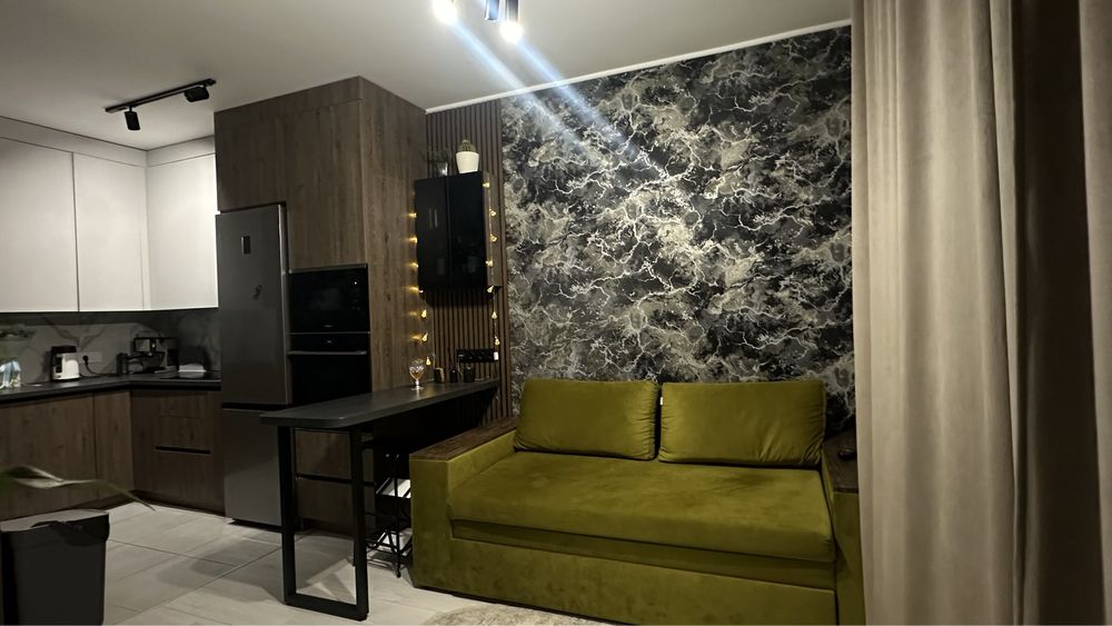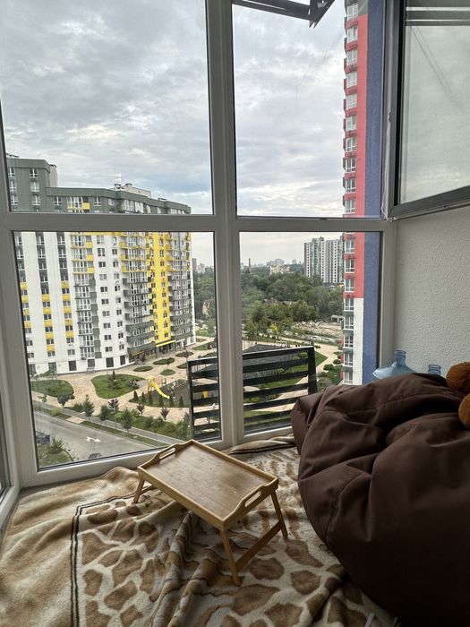 З кухні - вітальні є вихід на лоджію, звідки відкривається гарний вид на ліс та місто (є закритий та відкритий балкон). На кухні є великий диван з місцем для зберігання ( 2 м на 2.20м ). Встановлені дорогі меблі та вся необхідна найдорожча техніка ( вся техніка ще на гарантії). Кухня зроблена з найкращих матеріалів ( фасад NIEMANN та корпус і стільниця EGGER, фурнітура BLUM, профіль gola)
