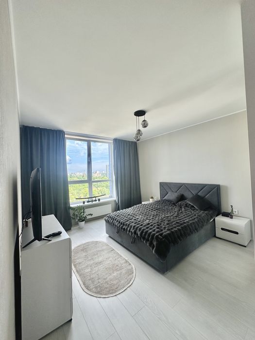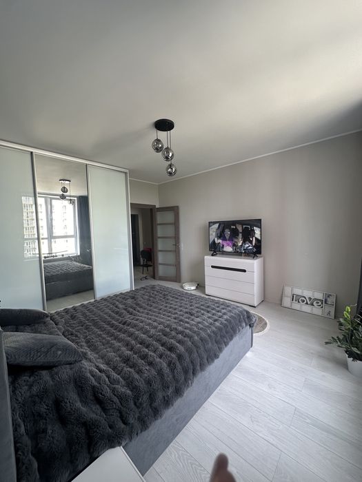 Велика квадратна спальня з новим ліжком та ортопедичним матрасом і всіма меблями ( 2 приліжкові тумби, шафа купе та тумба під телевізор).