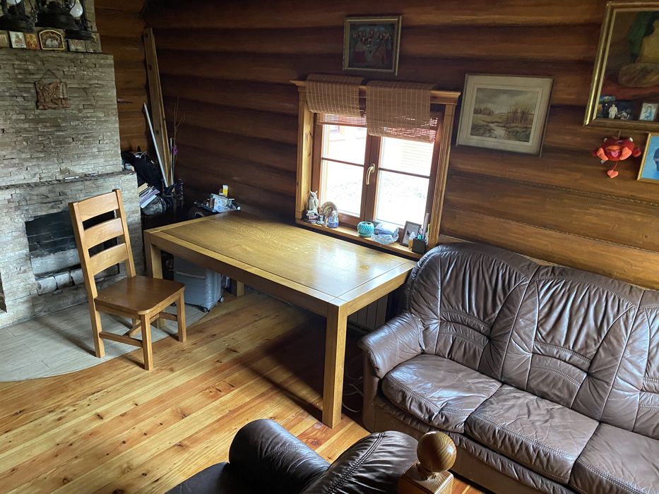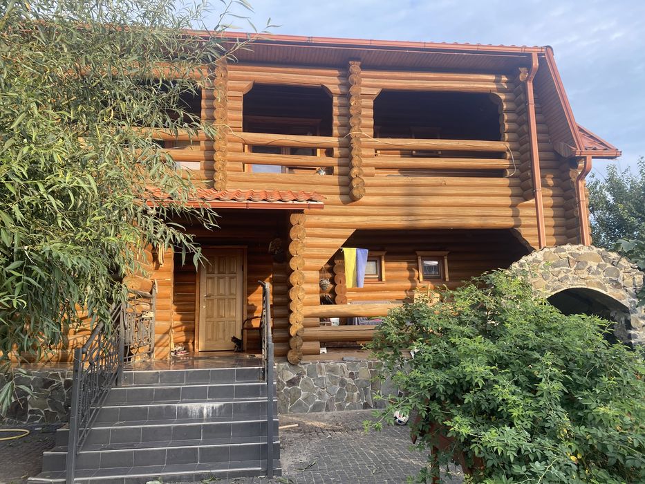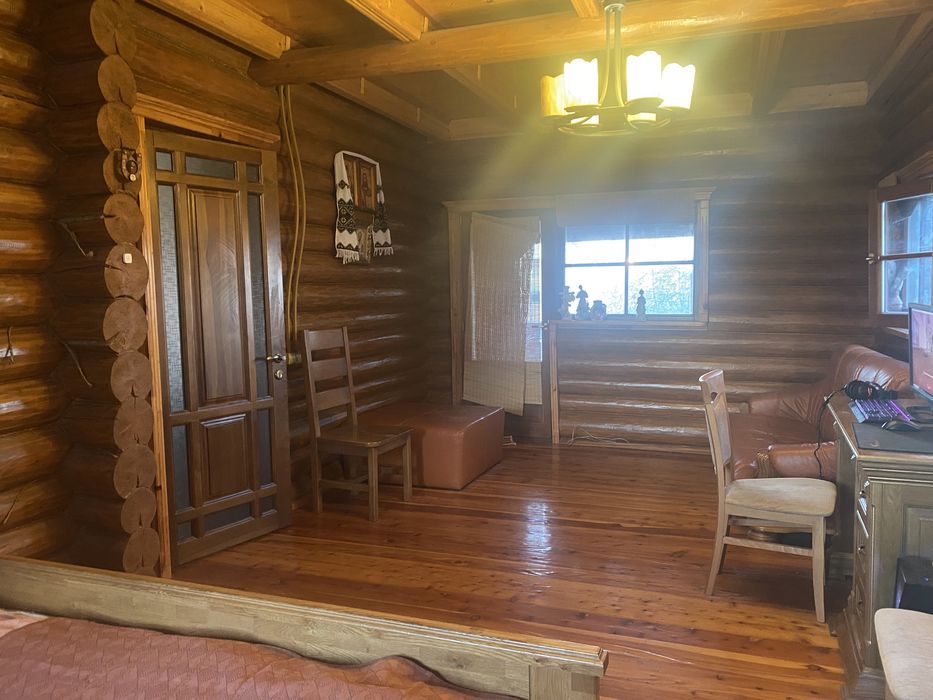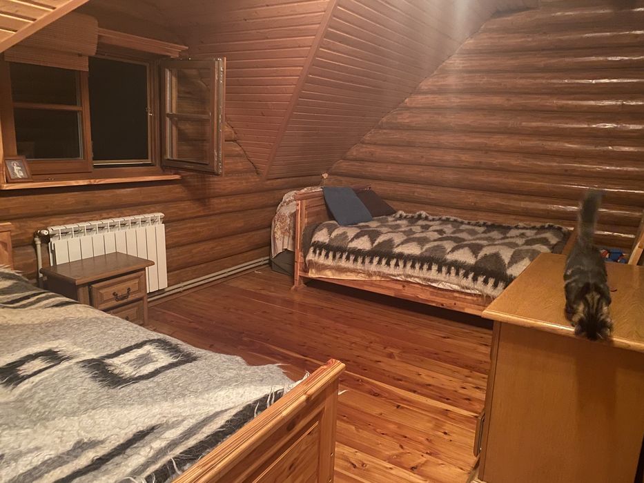 Теплий будиночок із зруба; Зруб і смереки, екологічний будинок, 165 кв. м. , 3 спальні і вітальня з каміном, 2 двоспальні ліжка, 1 спальня - 2*1,5 ліжка, 2 розкладні дивани. Плита газова. Є можливість розмістити тварин, будка для собаки середніх розмірів. Будинок оснащено сонячними панелями і батареєю накопичення енергії (під час відключення світла забезпечує роботу газового котла, опалення, скважину роботу холодильника), генератор на час тривалих блекаутів. Торг доречний.