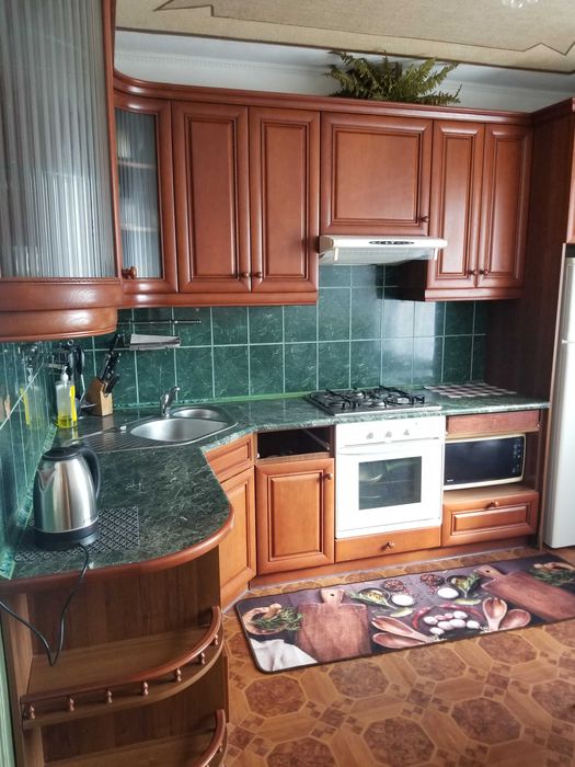 Встроенная кухня (Интерстиль) полностью оборудованная техникой: холодильник, микроволновка, чайник, посуда и т.д.Стиральная машина.