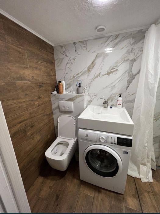 На першому поверсі є туалет, ванна, кімната та кухня на другому рівні вітальня приблизно 8кв. Продається з мебелью та технікою