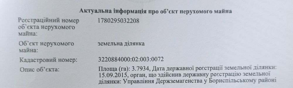 Продам земельний пай 3.7934га.; Продам земельний пай 3.7934 га.Документи готові до продажу. Тел. 06******54. Оренда закінчується 12.02.2026. Торг.