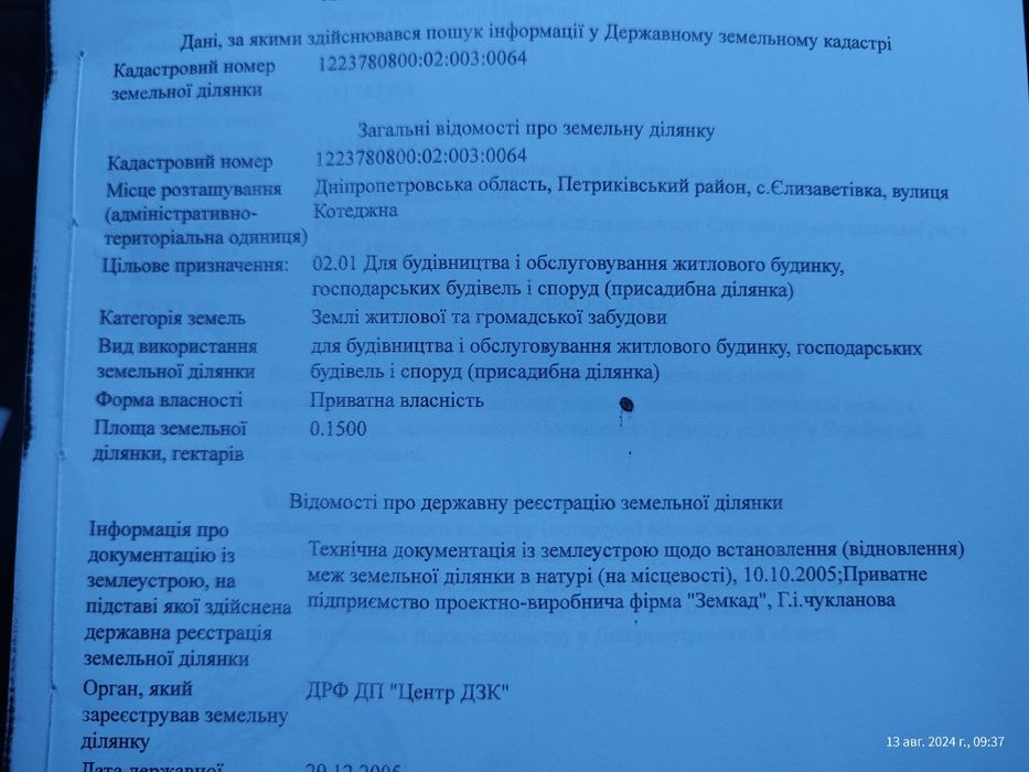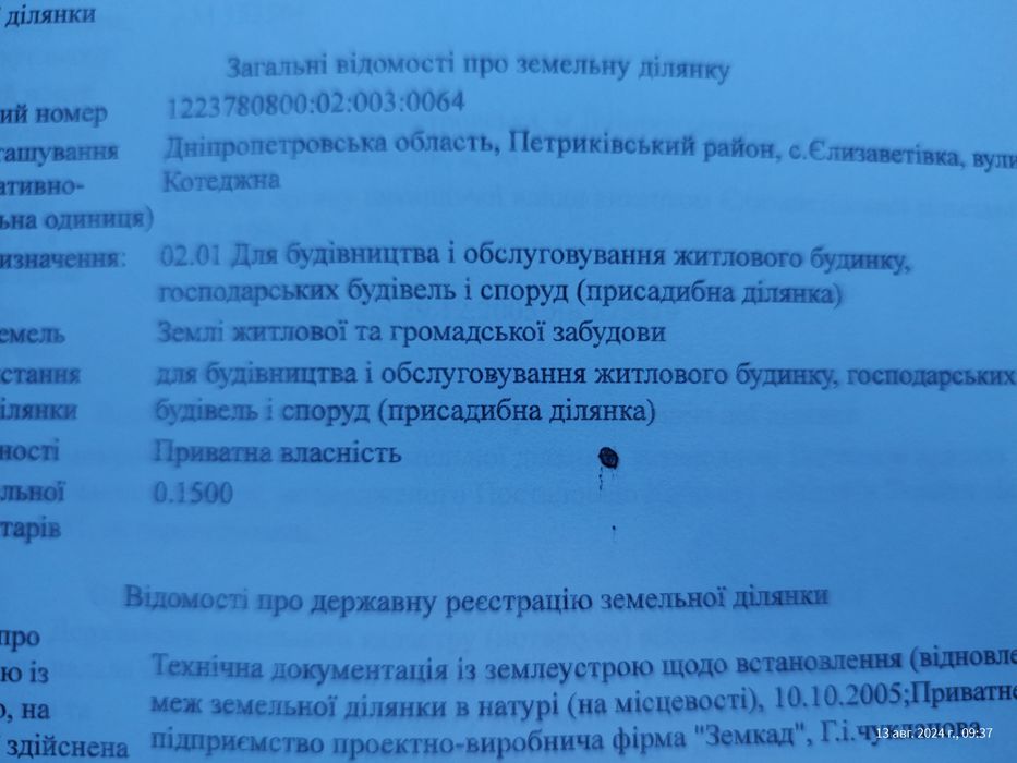 | Земельна ділянка: |