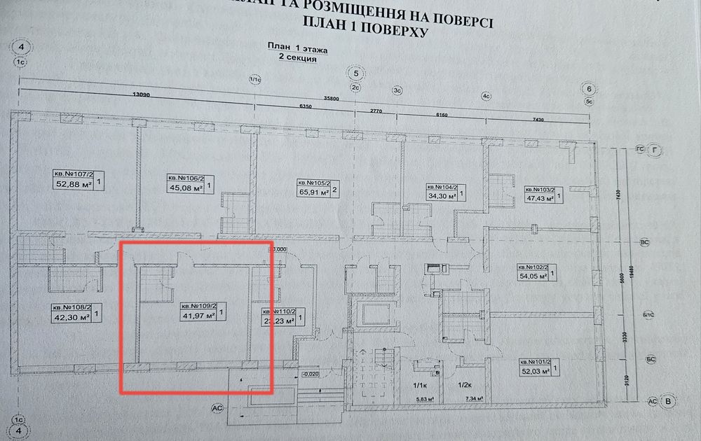 2 секция. Тип №9 на плане этажа.