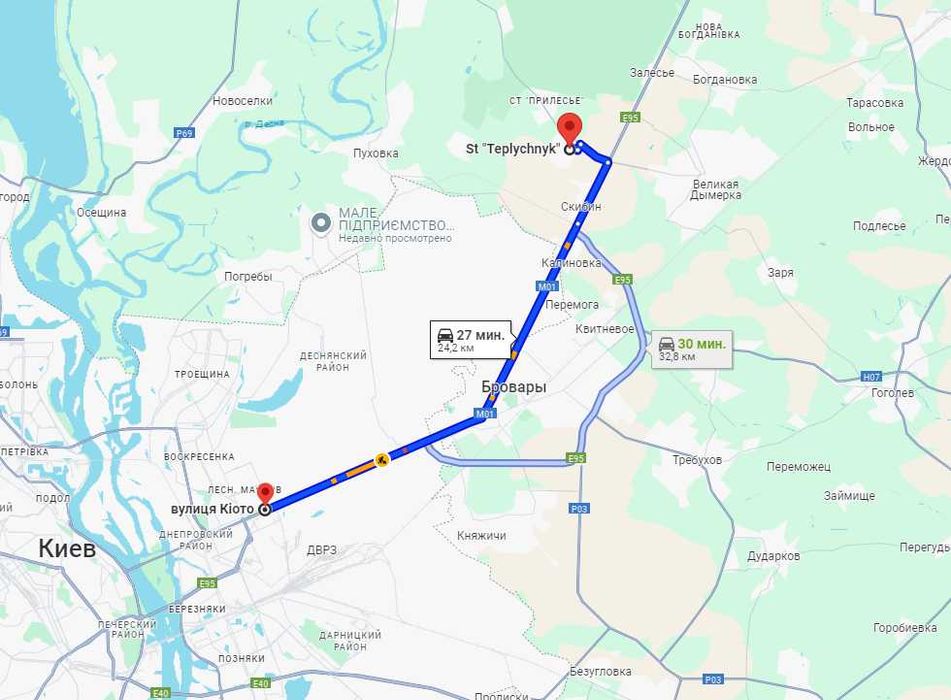 До дороги Київ-Чернігів - 700 метрів. Поряд - с. Калинівка, с. Велика Димерка