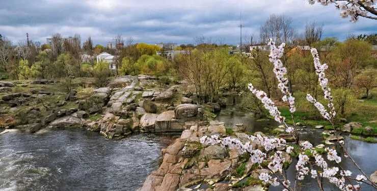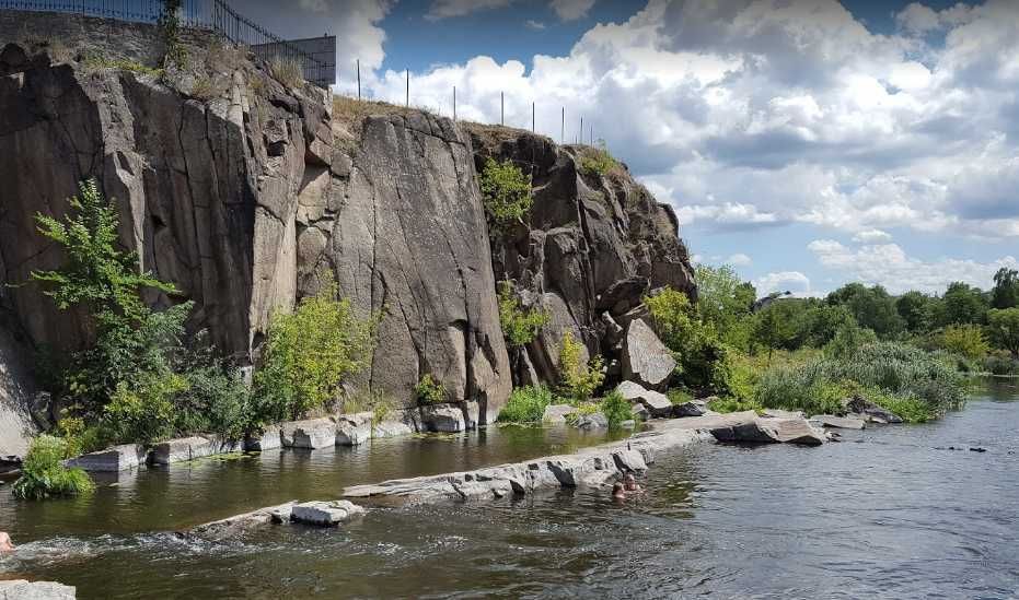 Будинок в м. Богуслав на березі р. Рось; Продається недобудований будинок (73 % готовності з новими документами) площею 97 м кв. із приватизованою земельною ділянкою (0,0871 га) в м. Богуслав по вул. Берегова, 11а (на березі р. Рось). Розміщення будинку на ділянці дозволяє розміщувати прибудови. Будинок знаходиться недалеко від центру міста (15 хв. пішки) у мальовничому тихому місці з красивим краєвидом на правобережну частину міста (Заросся), підвісний пішохідний міст через р. Рось (Міст Кохання) та Успенський собор Свято-Миколаєвського чоловічого монастиря (ще будується, але купол діючої церкви видно з вікна). До Богуславського гранітного оголення (Яма) 3-5 хв. пішки берегом річки або по дорозі. Земельна ділянка повністю огороджена, залишаться тільки зробити красивий вхід з вулиці. Площа земельної ділянки дозволяє розмістити гараж і підсобні будівлі, зону відпочинку і клумби, город і плодові дерева (вишні, горіх, калина та виноград вже є) та кущі. Поряд невеликий піщаний пляжик, де у спеку купаються жителі вулиці і гості (10 секунд).