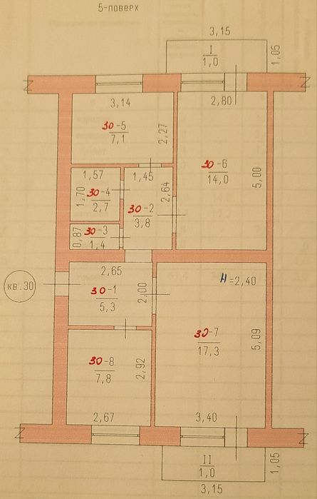 5/5, три роздільні кімнати (17, 14 та 7), простора світла кухня 7,8 м.кв., два балкони. Нова електропроводка та сантехніка, котел двухконтурний.