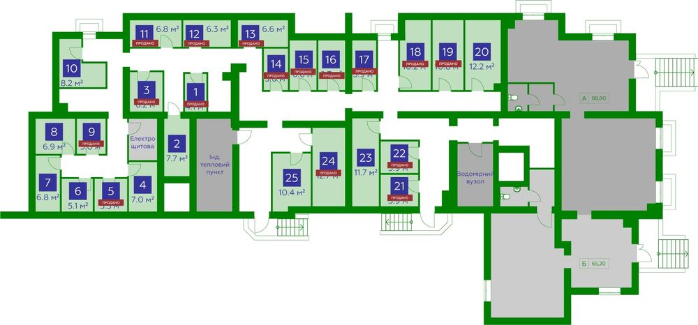 Площа комори 5м2. Комора не далеко від входу. На фото номер 14.