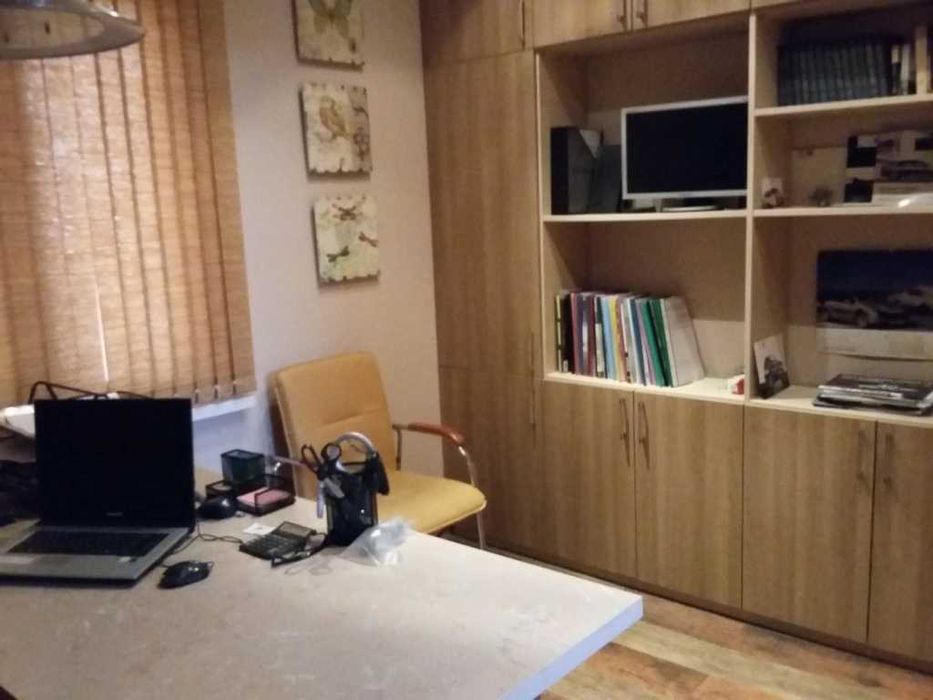Из коридора 1 этажа выход в гараж на 3 машины ( трое эл. ворот, сигнализация Венбест , доп.запасной выход ) . Общая площадь с гаражом - 180 кв.м., жилая-120 кв.м. Можно использовать под офис, можно кабинет переделать под детскую или вторую спальню (если убрать стол и поставить кровать или диван). Центральна вода и канализация, два бойлера для гор. воды – большой 150л. и маленький, в случае небольшого расхода- на 40литров. Эл.котел для обогрева всех полов ( подпольное отопление). В тамбурах отдельное локальное эл.отопление полов . центральное водоснабжение, канализация и 3-х фазный ток. Интернет по оптике 1 Гб. Также есть 2 локальные сигнализации - гараж и дом отдельно.