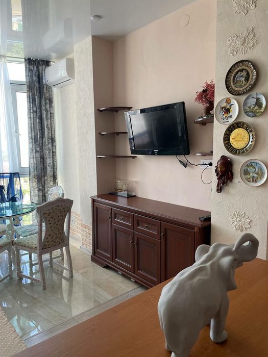 Київський; Сдам свою квартиру в Аквамарине; Сдам квартиру в ЖК " Аквамарин" на 16 ст Большого Фонтана. Самая лучшая набережная в 10 минут ходьбы Панорамные окна. Прямой вид моря, панорамные окна.. Спальня с двухспальной кроватью и гардеробной , кухня с зоной отдыха (двухспальный диван). Дом под круглосуточной охраной. Рядом остановка маршрутки и трамвая . Два супермаркета. Писать только сообшения OLX или на Вайбер или Телеграмм