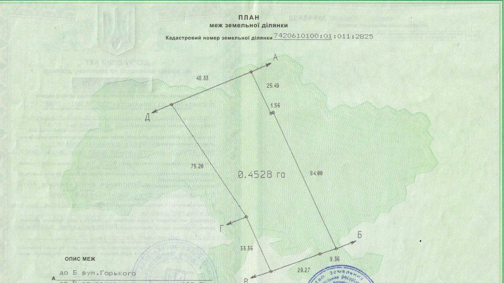 Кадастровий номер: 7420610100:01:011:2825