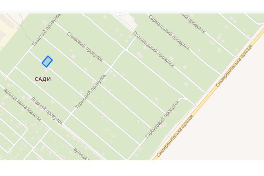 Продається земельна ділянка 9,75 соток, провулок Шовковичний 192 в м. Черкаси, в садово городньому кооперативі "Черкаський" що знаходиться по вул. Симиренківська (Рябоконя). Ділянка рівна, прямокутна, цільове призначення: Для індивідуального садівництва, є можливість зміни цільового призначення на "будівництво житлового будинку". На сусідній ділянці підведено електроенергію. Земля рівна, без впадин та переходів. Немає ніяких фундаментів чи будівельного сміття. Немає високовольтних ліній. Сусідні ділянки активно забудовуються. Продаж від власника.