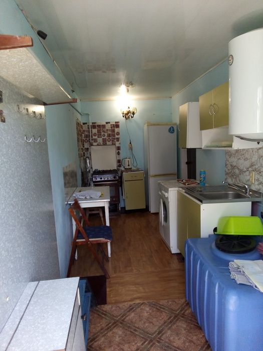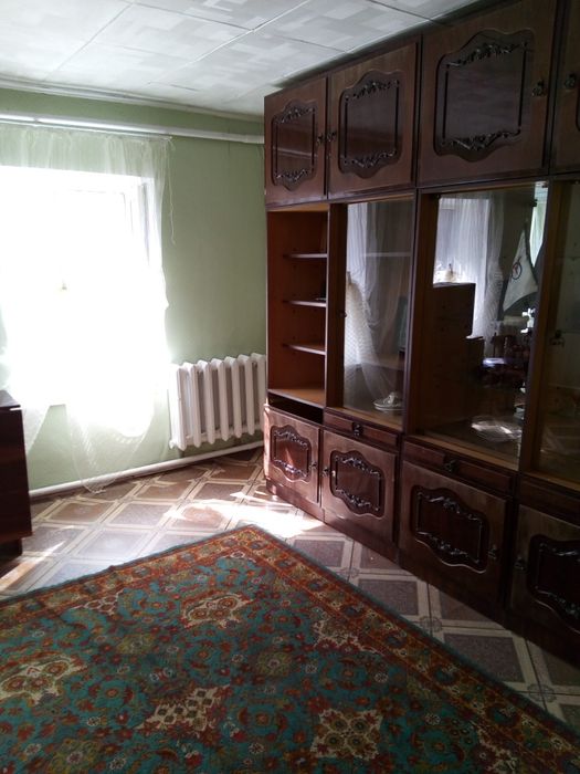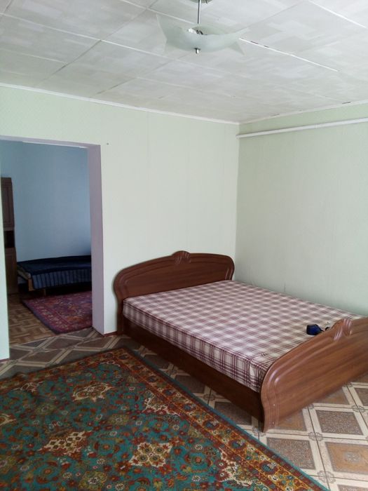 Одноэтажный дом: в нем две комнаты,кухня,душ,туалет.(дом старой постройки,( можно под сдачу)