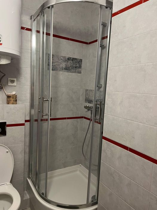 - душова кабіна, вмивальник, унітаз