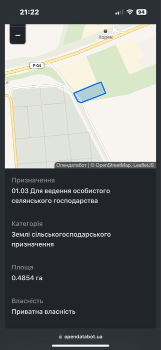 | Земельна ділянка: |