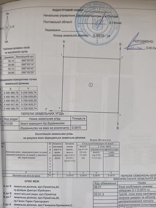 | Земельна ділянка: |