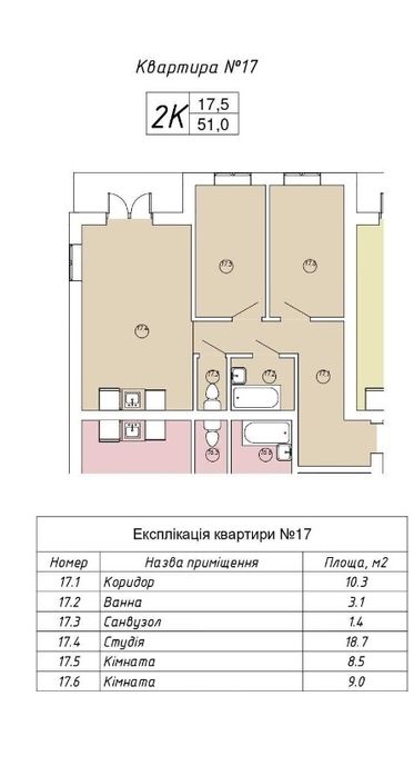 Площа 51 м кВ