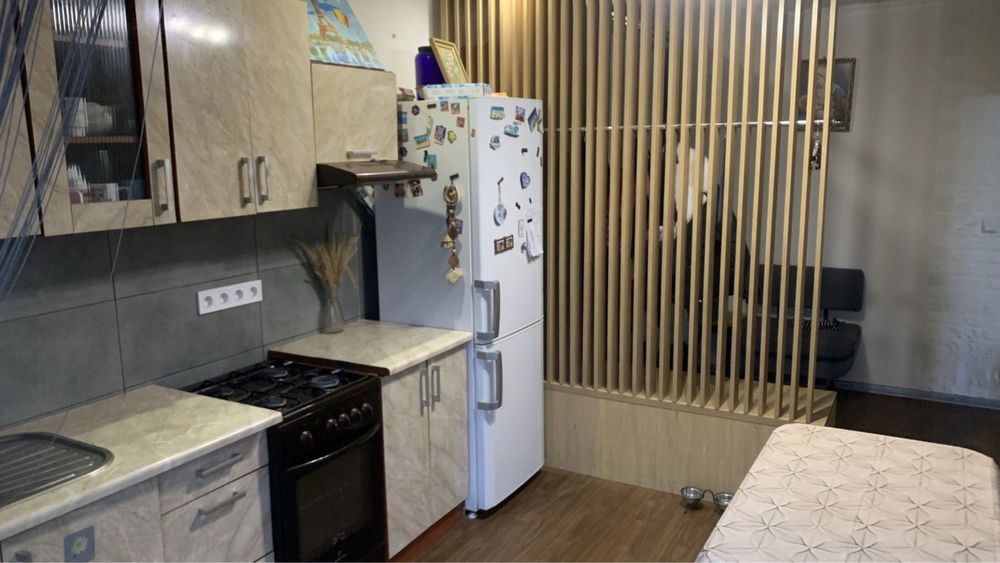 Веелика кухня, одна прохідна кімната.