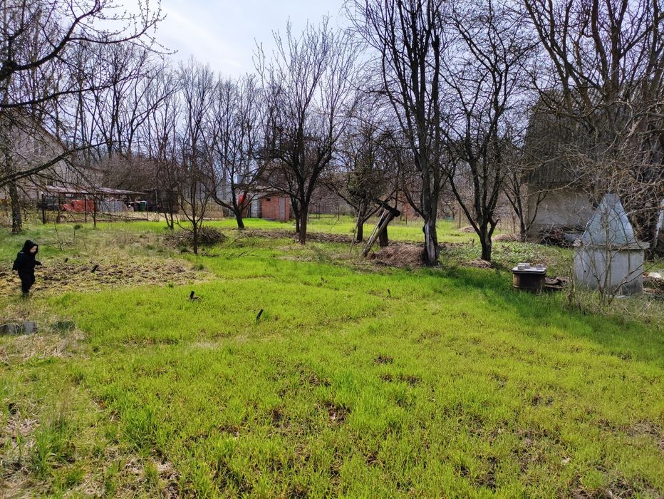 Є електрика. Ділянка обгороджена, є сарай та двоповерховий будинок (коробка), який можна використовувати як підсобне приміщення при будівництві нового будинку та ночівля для робітників, туалет для них на вулиці. Або використовувати як гараж заввишки 3 м, розмір 5*6 метрів. Є криниця. 10 хвилин до електрички.