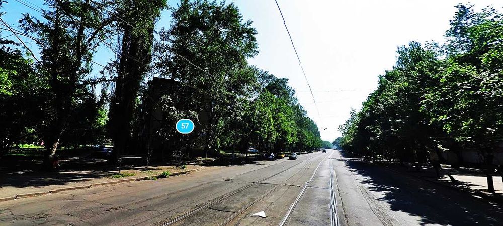 расположена по "красной линии", по улице Соборности, в районе Соцгорода,