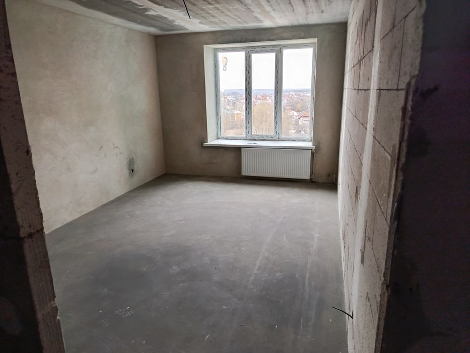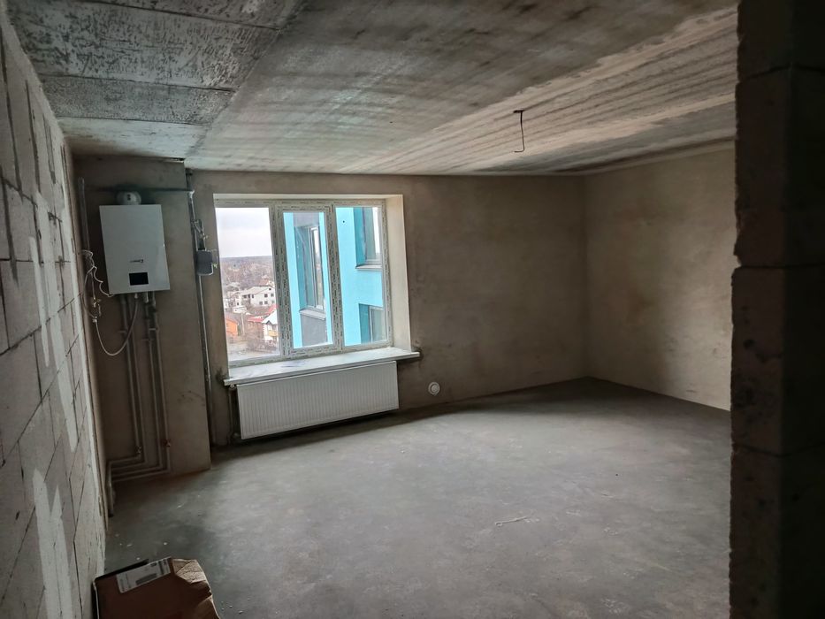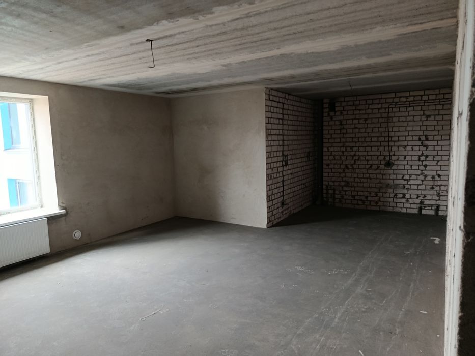 Простора двокімнатна квартира 82,7кв. м з роздільним сан вузлом автономним опаленням лоджія дві кімнати та кухнею 30 кв м .Встановлений газовий котел вікна ,вхідні двері ,зроблена стяжка підлоги та поштукатурені стіни крім газобетон них перегородок.