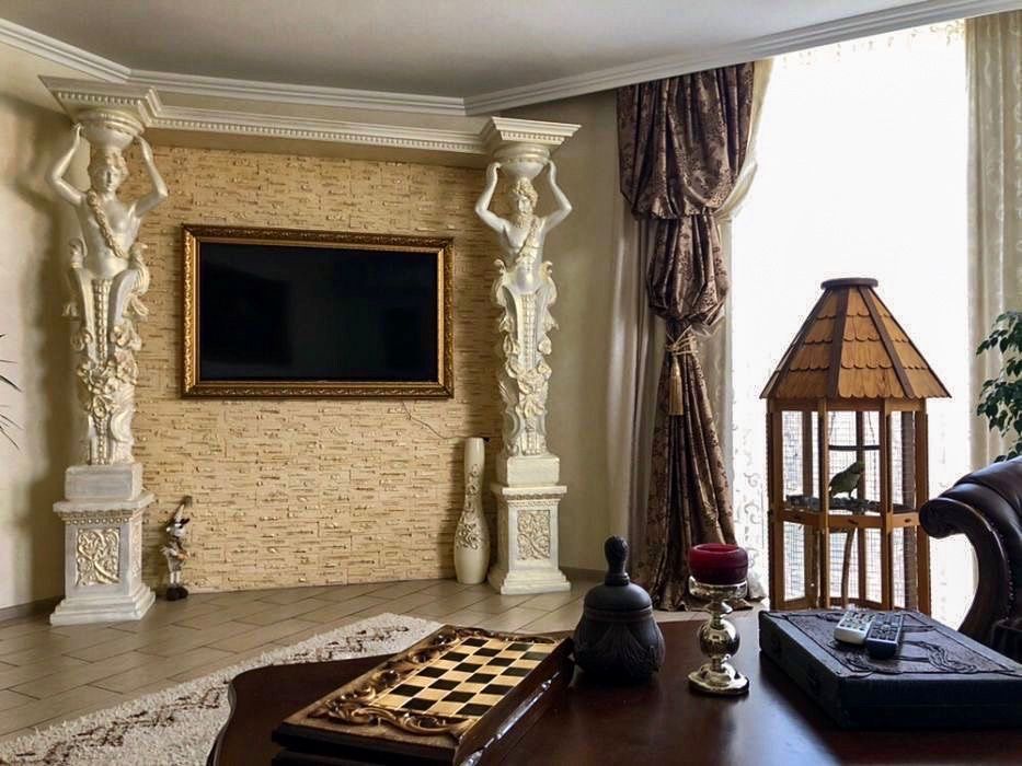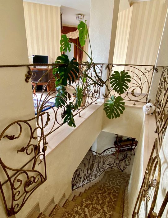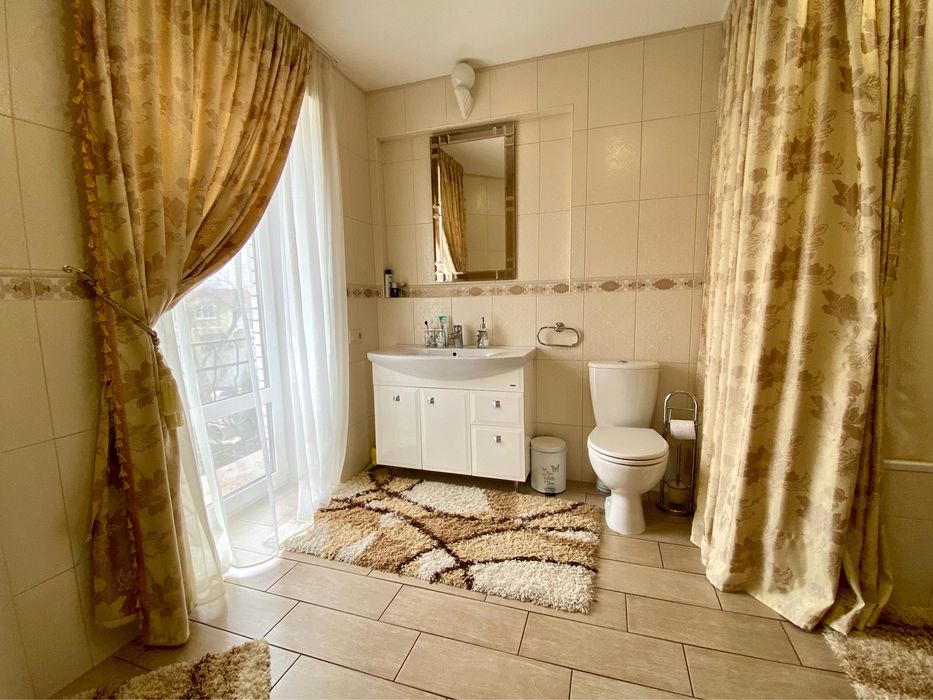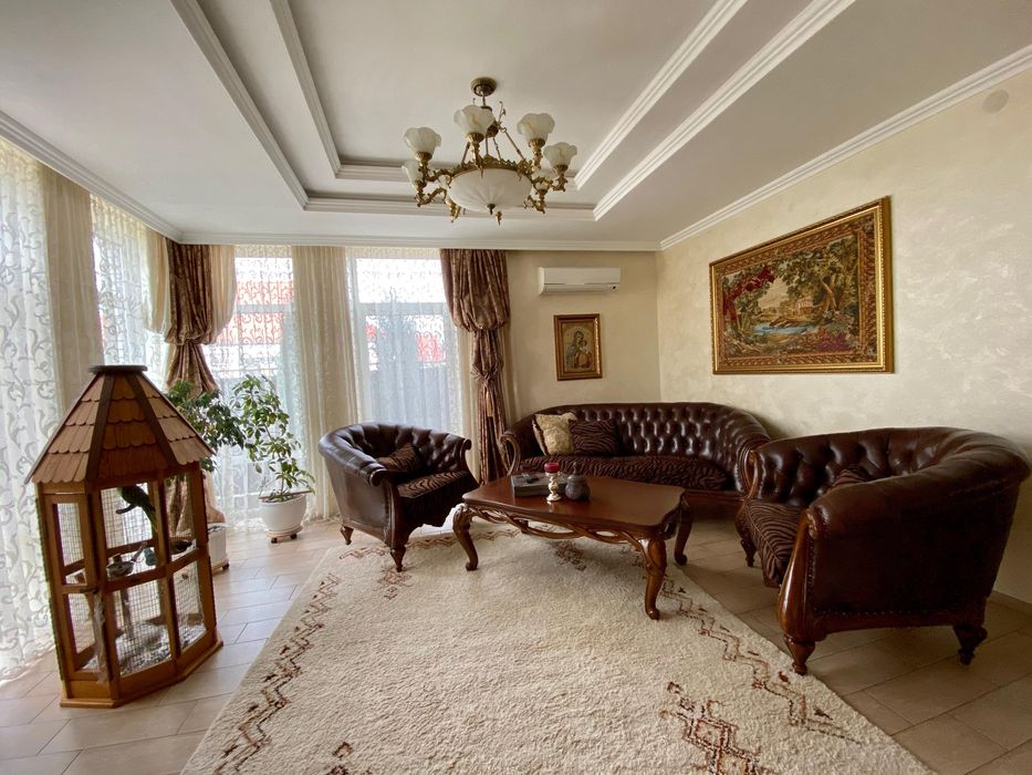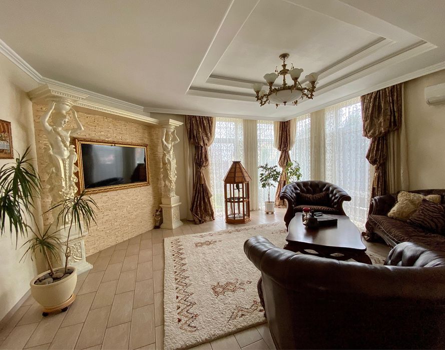 В доме выполнен ремонт, оснащен всей необходимой техникой, кондиционеры, телевизоры, интернет, спутниковая тарелка. Дорогой и хороший стабилизатор напряжения (3 фазы). Теплый водяной пол с регулировкой температуры. Газовый и электро котлы. Насосы для подачи воды, очистка воды (осмос), сигнализация, электро ворота (въездные и гаражные). Автоматический полив двора, канализация-септик. Дом полностью может работать автономно при отключениях электроэнергии, стоит мощный генератор плюс инвертор.