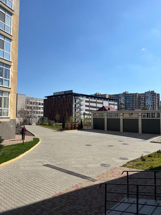 Чистый двор закрытого типа с автоматическими воротами, далеко от дороги; во дворе парковка, также сдаются места на крытом паркинге рядом с домом