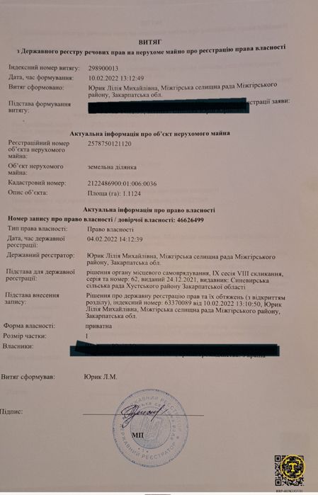 | Земельна ділянка: |