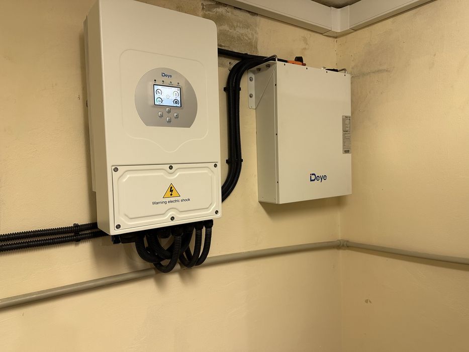 Встановлене обладнання Deye (інвертор 5кВт та акумулятор) для безперебійного живлення.