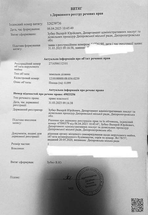 | Земельна ділянка: |
