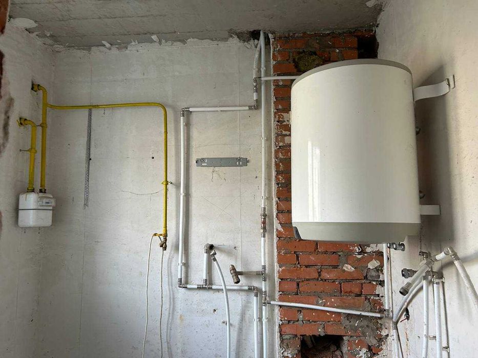 Зроблено чорнова штукатурка, розведено опалення, водопостачання, каналізація, електрика, газ.