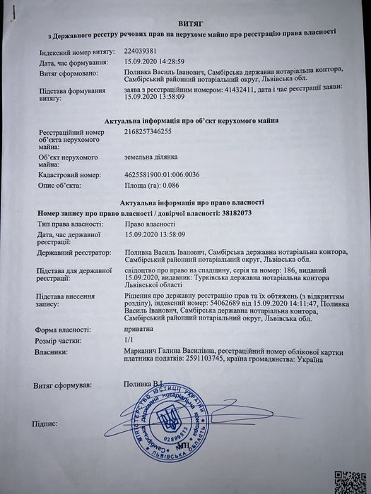 | Земельна ділянка: |