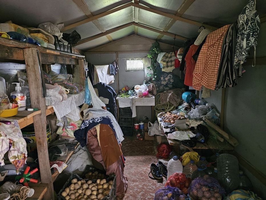 Земля постійно обробляється і збирається урожай. Вагончик має лежанку і стелажі для зберігання інвентарю. Також зроблено навіс перед входом.